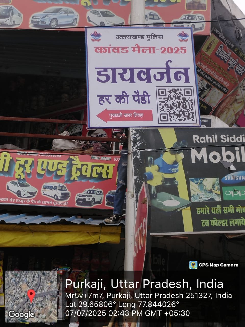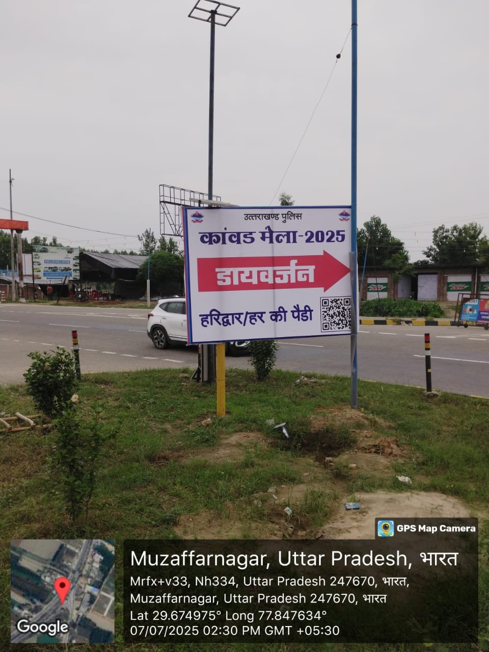 कांवड़ यात्रा के दौरान यातायात को सुचारु रूप से चलाने के हेतु एसएसपी हरिद्वार के दिशा निर्देशों पर हरिद्वार पुलिस द्वारा विभिन्न मार्गों पर शिवभक्तों की सुविधा के लिए संकेतात्मक बोर्ड लगाए हैं।