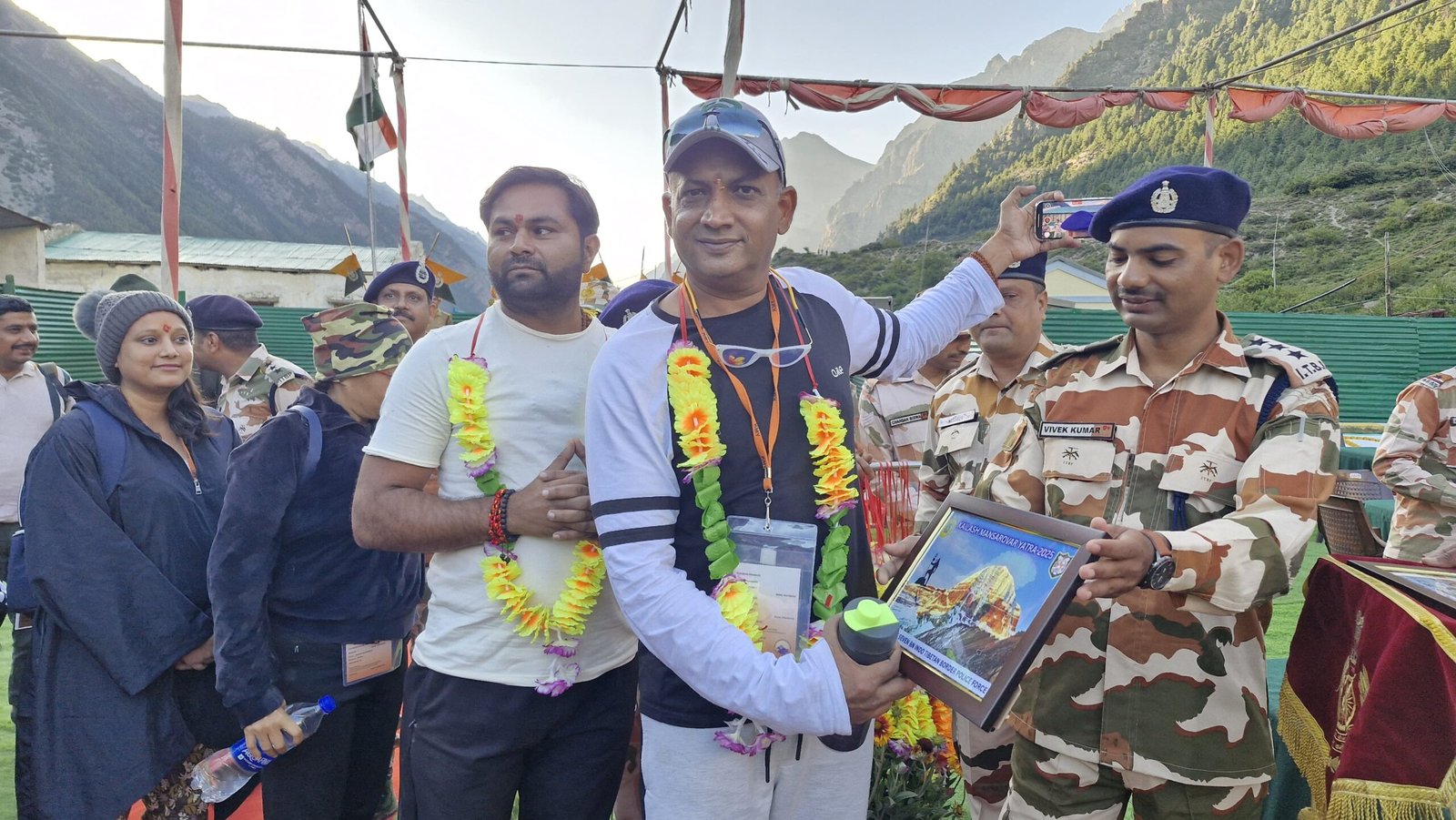 पूर्व रं कल्याण संस्था धारचूला ईकाई अध्यक्ष दीपक सिंह रोकली के पहले दल के एलो आईजी आईटीबीपी के संजय गुंज्याल को पगड़ी पहनाकर स्वागत किया।