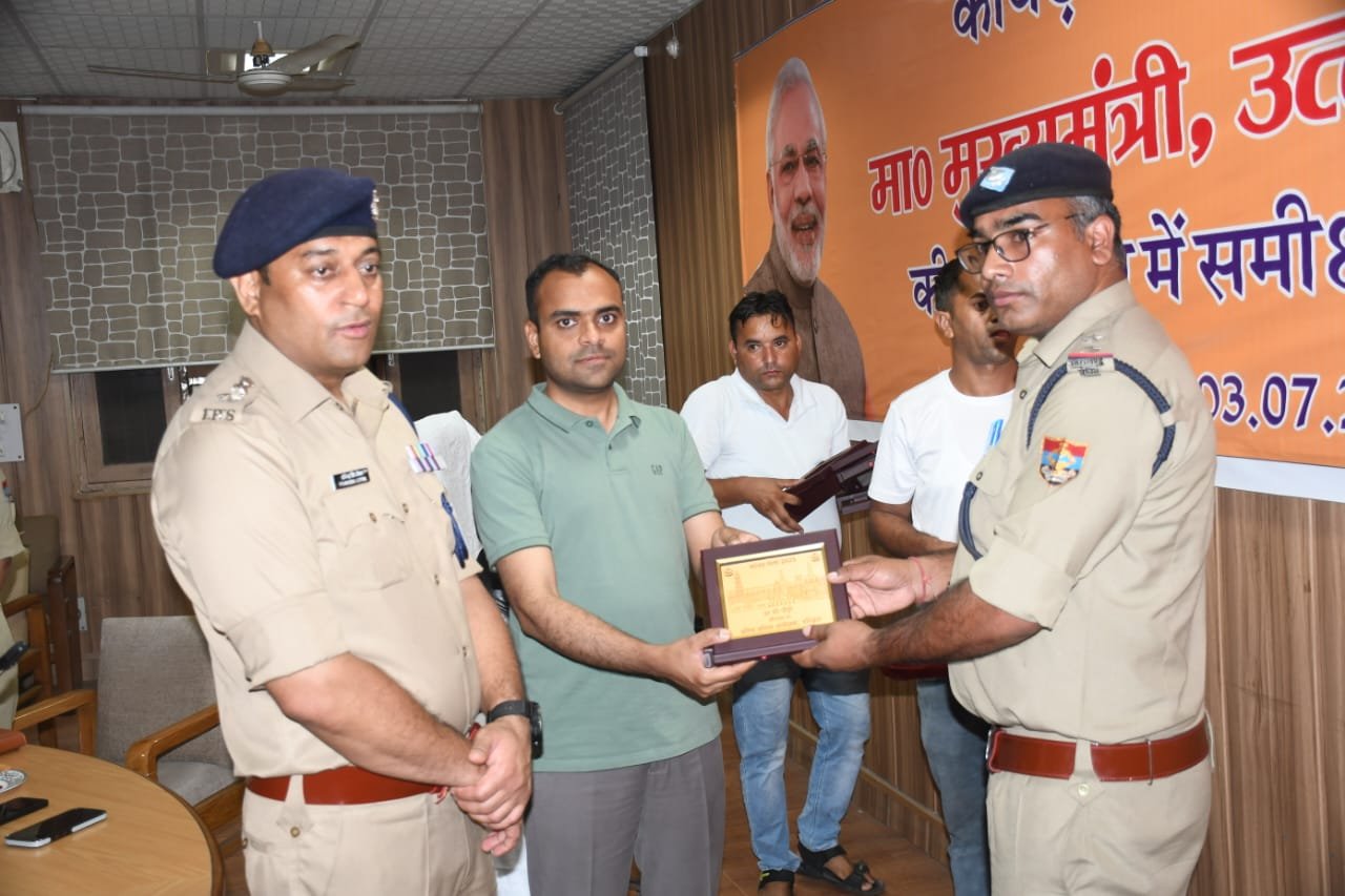 इस दौरान आज कांवड़ यात्रा में अच्छी ड्यूटी करने पर 26 पुलिसकर्मियों को सम्मानित करते हुए उन्हें प्रशस्ति पत्र, स्मृति चिन्ह एवं नकद इनाम से पुरस्कृत किया गया।