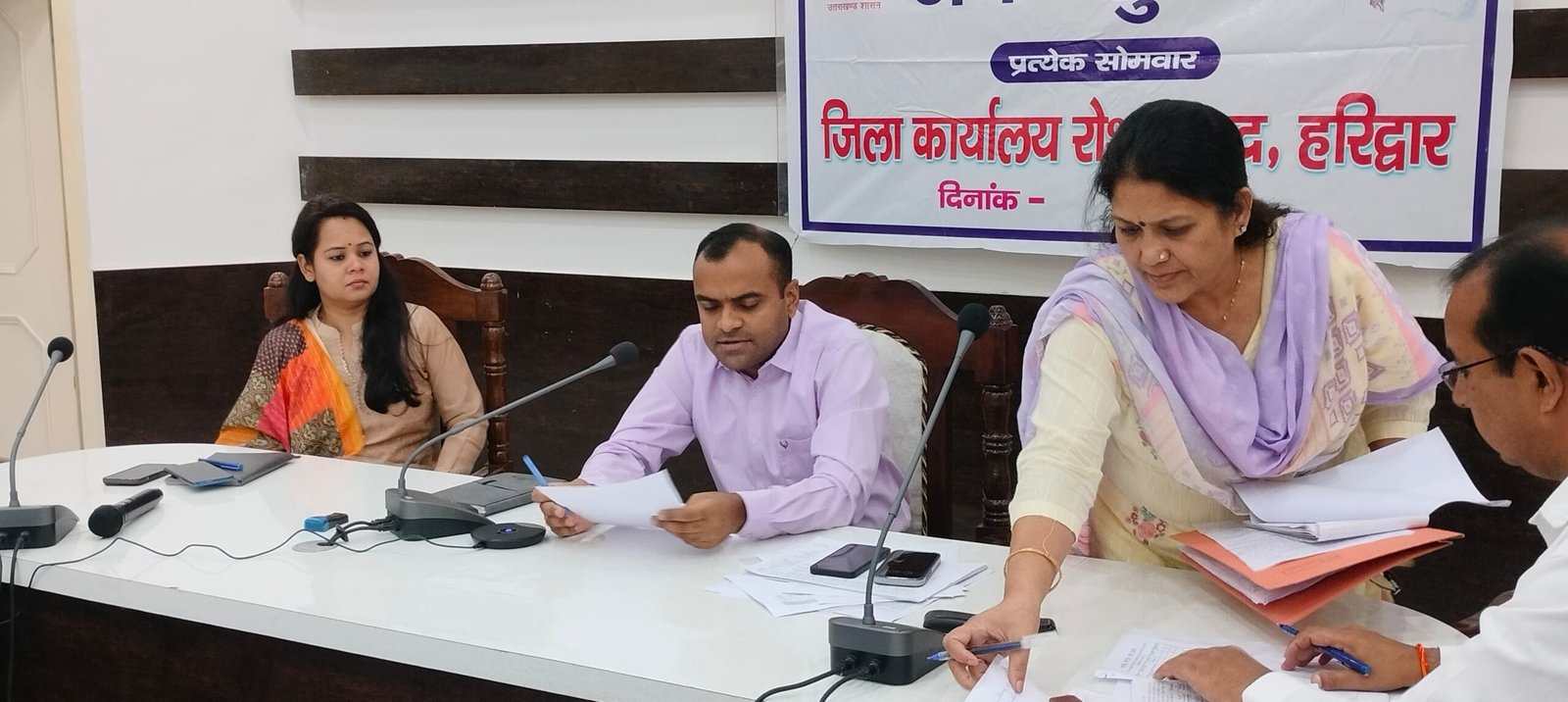 हरिद्वार ।- जनपदवासियों की समस्याओं के त्वरित निराकरण करने के उद्देश्य से जिलाधिकारी मयूर दीक्षित की अध्यक्षता में प्रत्येक सोमवार को जिला कार्यालय सभागार में जन सुनवाई कार्यक्रम आयोजित किया किया जा रहा है। आज आयोजित जनसुनवाई कार्यक्रम में विभिन्न क्षेत्रों से आए फरियादियों द्वारा जल भराव, पेयजल, अतिक्रमण, विद्युत, सड़क, राशन कार्ड आदि से संबंधित 28 समस्याएं दर्ज कराई गई। जिलाधिकारी द्वारा 15 समस्याओं का मौके पर ही निराकरण किया गया शेष समस्याओं को त्वरित निस्तारण हेतु संबंधित विभागों को प्रेषित किया गया।