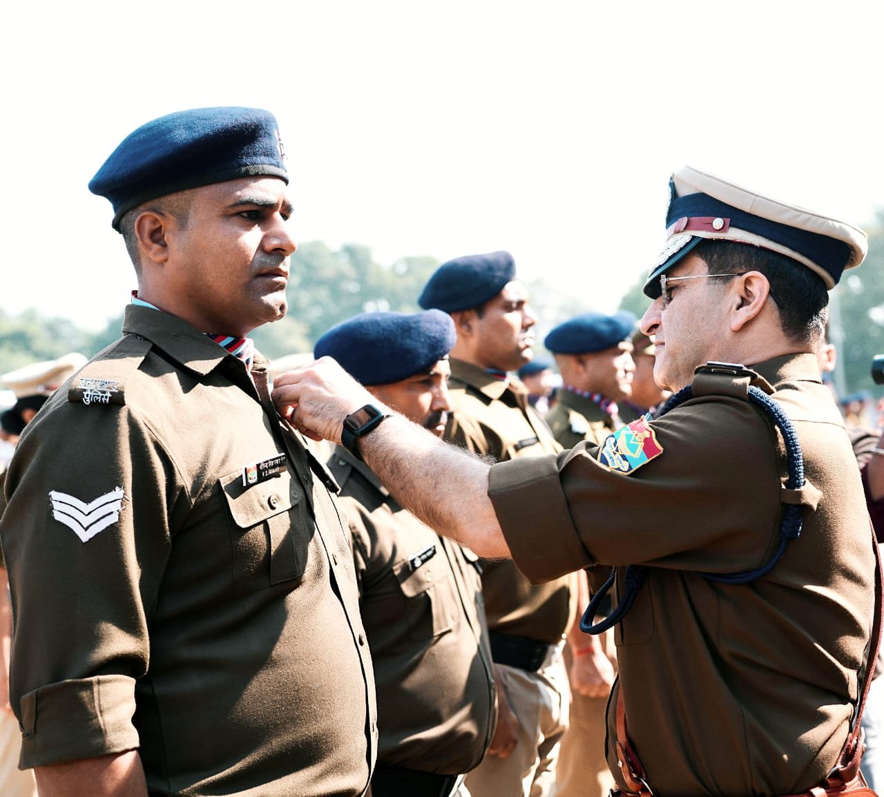 उत्तराखंड स्थापना की रजत जयंती से पूर्व रितिक परेड की फाइनल रिहर्सल के दौरान हरिद्वार पुलिस के इतिहास का एक और गौरवपूर्ण क्षण जुड़ा जब राज्य के अन्य ऊर्जावान पुलिस कर्मियों सहित हरिद्वार पुलिस के कुछ चुनिंदा जवानों को D.G.P. दीपम सेठ ने आज पुलिस लाइन परेड मैदान देहरादून में पुलिस महानिदेशक प्रशस्ति डिस्क पदक पहनाकर अलंकृत कर सभी को भविष्य के लिए शुभकामनाएं दी गईl