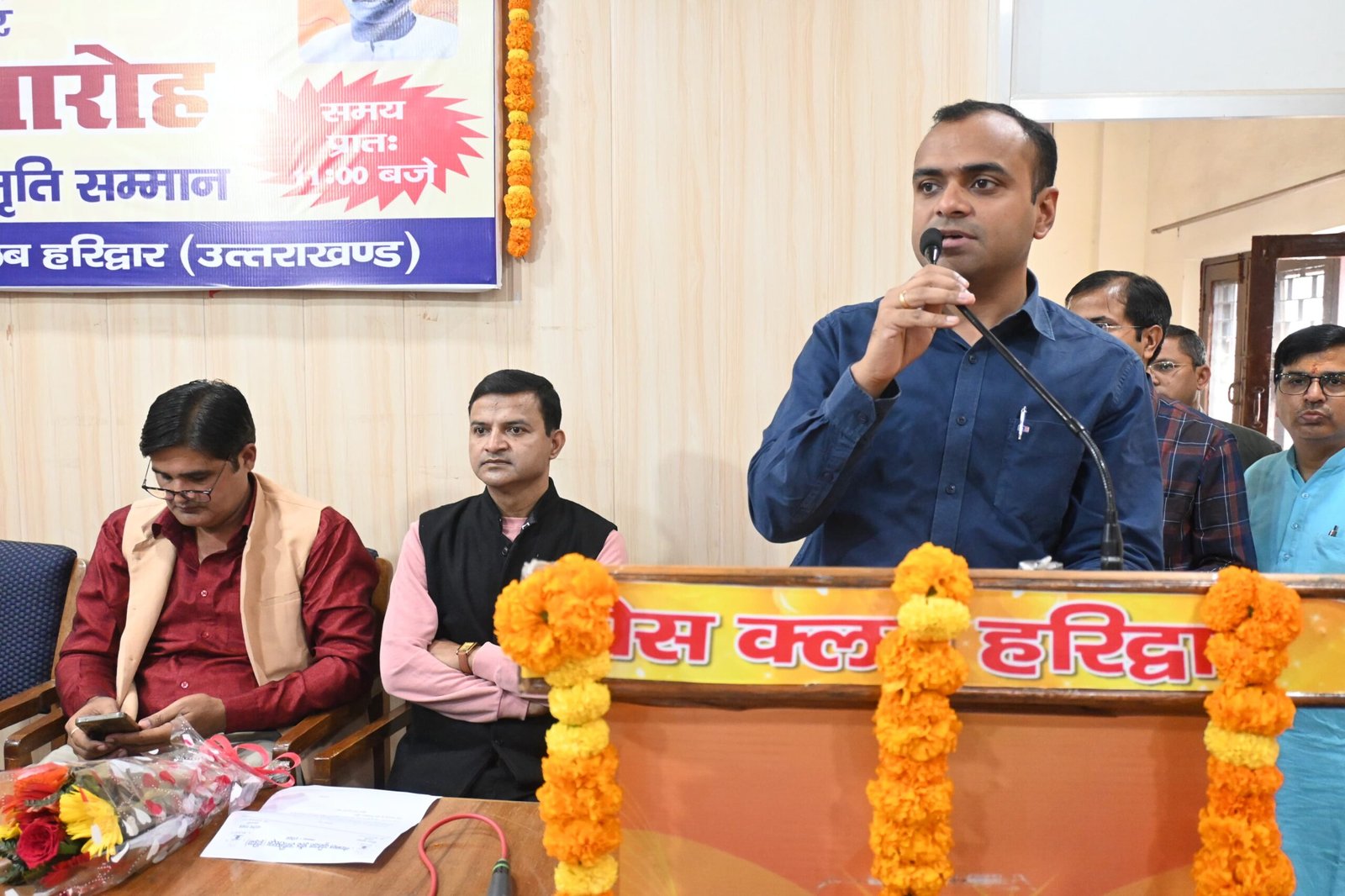 इस मौके पर जिलाधिकारी मयूर दीक्षित ने कहा कि पत्रकारों को पारदर्शिता से कार्य करना चाहिए। उनकी लेखनी का समाज पर गहरा असर पड़ता है। पत्रकार शासन प्रशासन के लिए भी पर प्रदर्शक की भूमिका का निर्वहन करते है। एसएसपी प्रमेन्द्र डोभाल ने अपने संबोधन में गणेश शंकर विद्यार्थी को महात्मा गांधी के पदचिन्हों पर चलने वाला अहिंसावादी महान पत्रकार बताते हुए कहा कि उन्होंने हिंदी पत्रकारिता के क्षेत्र में प्रारंभिक अलख जगाने के साथ नया आयाम दिया। वहीं कई पत्रकारों को पत्रकारिता के पथ पर चलने की प्रेरणा दी।उनके योगदान को भुलाया नहीं जा सकता। स्वागत उद्बोधन में एन यू जे के निवर्तमान जिला अध्यक्ष आदेश त्यागी ने संस्था की उपलब्धियां पर प्रकाश डालते हुए कहा कि गणेश शंकर विद्यार्थी सांप्रदायिक सद्भाव के लिए अपने प्राणों की आहुति लगा दी।एनयूजे आई के प्रदेश अध्यक्ष सुनील दत्त पाण्डेय ने कहा कि हर वर्ष क्रांतिकारी गणेश शंकर विद्यार्थी जयंती और सम्मान समारोह मनाने की परंपरा समाज में उनके योगदान को आम जन के बीच स्मरण बोध कराती है जो प्रशंसनीय है। प्रेस क्लब अध्यक्ष धर्मेंद्र चौधरी ने कहा कि पत्रकारिता के क्षेत्र में प्रेस क्लब की अपनी पहचान है। एनयूजे, आई, श्रमजीवी पत्रकार यूनियन सहित अन्य प्रतिष्ठित संगठन प्रेस क्लब से जुड़े हैं। उन्हें गर्व है कि एनयूजे (आई) उत्तराखंड इकाई हरिद्वार के सदस्य के नाते प्रेस क्लब हरिद्वार के अध्यक्ष पद पर सेवाएं दे रहे हैं। संस्था के निवर्तमान महामंत्री डॉ शिवा अग्रवाल ने गणेश शंकर विद्यार्थी के जीवन चरित्र पर प्रकाश डाला।