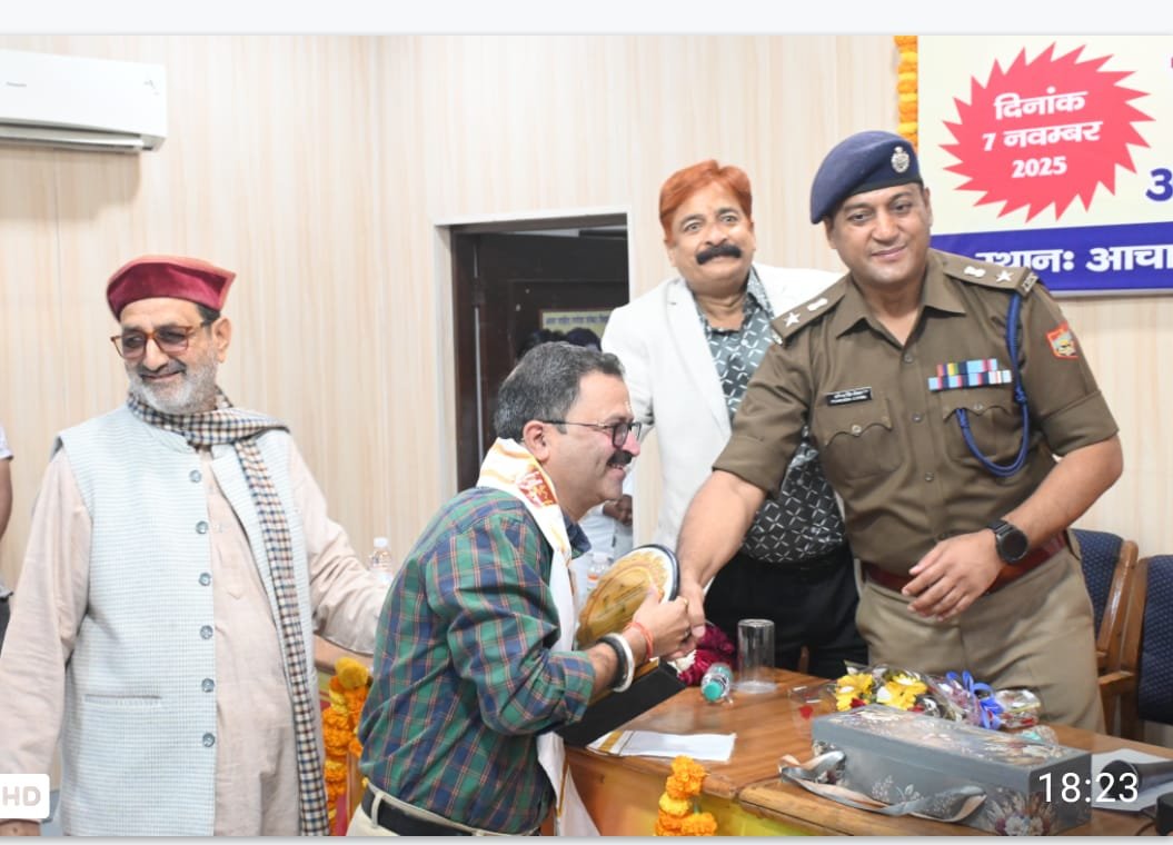 गौरतलब है कि देश में पत्रकारों की सबसे बड़ी संस्था एनयूजे (आई) उत्तराखंड, इकाई हरिद्वार की नवनिर्वाचित कार्यकारिणी का शपथ ग्रहण समारोह एवं अमर शहीद गणेश शंकर विद्यार्थी सम्मान समारोह का आयोजन प्रेस क्लब हरिद्वार के सभागार में आयोजित किया गया। कार्यक्रम के अध्यक्ष जगद्गुरु शंकराचार्य स्वामी राजराजेश्वराश्रम, मुख्य अतिथि जिलाधिकारी मयूर दीक्षित एवं विशिष्ट अतिथि वरिष्ठ पुलिस अधीक्षक प्रमेन्द्र डोभाल ने नवनिर्वाचित कार्यकारिणी सदस्यों अध्यक्ष- नरेश गुप्ता, उपाध्यक्ष-राधिका नागरथ, विकास कुमार झा,, महामंत्री- संदीप रावत, कोषाध्यक्ष-सचिन कुमार, वरिष्ठ सचिव-जोगेंद्र मावी सचिव- प्रतिभा वर्मा व सोमेश खत्रीसंगठन सचिव-आशीष मिश्रा, प्रचार सचिव-नितिन राणा, समारोह सचिव-संजीव शर्माविधि सलाहकार-सुरेंद्र शर्मा एवं सदस्य कार्यकारिणी सदस्यों में अनिल चौधरी, स्वरूप पुरी, शिवांग अग्रवाल, ठाकुर शैलेंद्र सिंह, संतोष कुमार, कुमकुम शर्मा, अनूप कुमार, शमशेर बहादुर, नीलम सैनी, निशा शर्मा, दिव्यांश शर्मा, अम्बरीष कुमार, वैभव भाटिया, करण खुराना, विश्वजीत सिंह ने पद एवं गोपनीयता की शपथ दिलाई।
