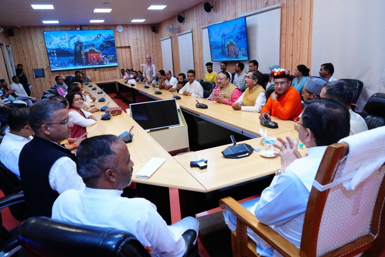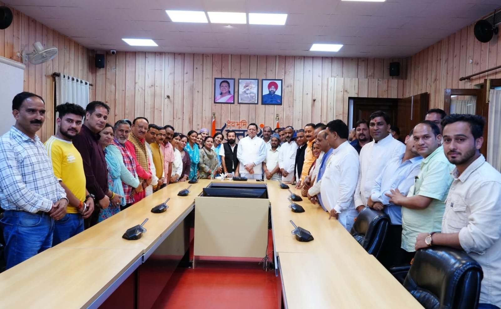 मुख्यमंत्री श्री पुष्कर सिंह धामी से सोमवार को मुख्यमंत्री आवास में गंगोत्री क्षेत्र से विधायक श्री सुरेश सिंह चौहान तथा पुरोला क्षेत्र से विधायक श्री दुर्गेश्वर लाल के नेतृत्व में उत्तरकाशी जिले से त्रिस्तरीय पंचायत चुनावों में जीत दर्ज करने वाले नवनिर्वाचित जिला पंचायत सदस्यों ने भेंट की |