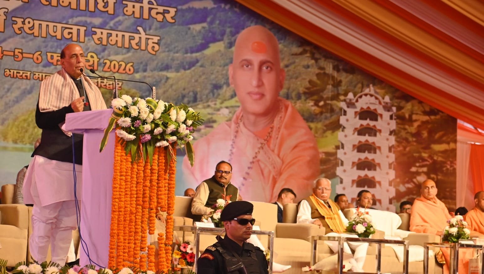 केन्द्रीय रक्षा मंत्री श्री राजनाथ सिंह ने गंगा तट पर आयोजित समारोह को संबोधित करते हुए कहा कि इस पावन अवसर पर उपस्थित होना उनके लिए सौभाग्य का विषय है। उन्होंने मां गंगा को नमन करते हुए ऋषि-मुनियों की स्मृतियों को श्रद्धांजलि अर्पित की। उन्होंने कहा कि स्वामी सत्यमित्रानंद गिरि जी भले ही आज हमारे बीच शारीरिक रूप से उपस्थित नहीं हैं, किंतु उनकी साधना, विचार और जीवन दर्शन आज भी समाज को मार्गदर्शन प्रदान कर रहे हैं। प्रतिमा की प्राण-प्रतिष्ठा उनके जीवन मूल्यों और विचारधारा को पुनः जागृत करने का प्रतीक है।
