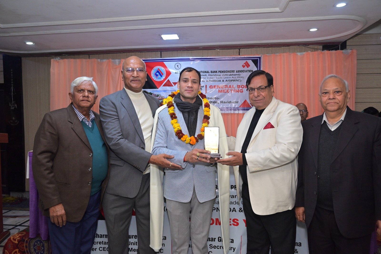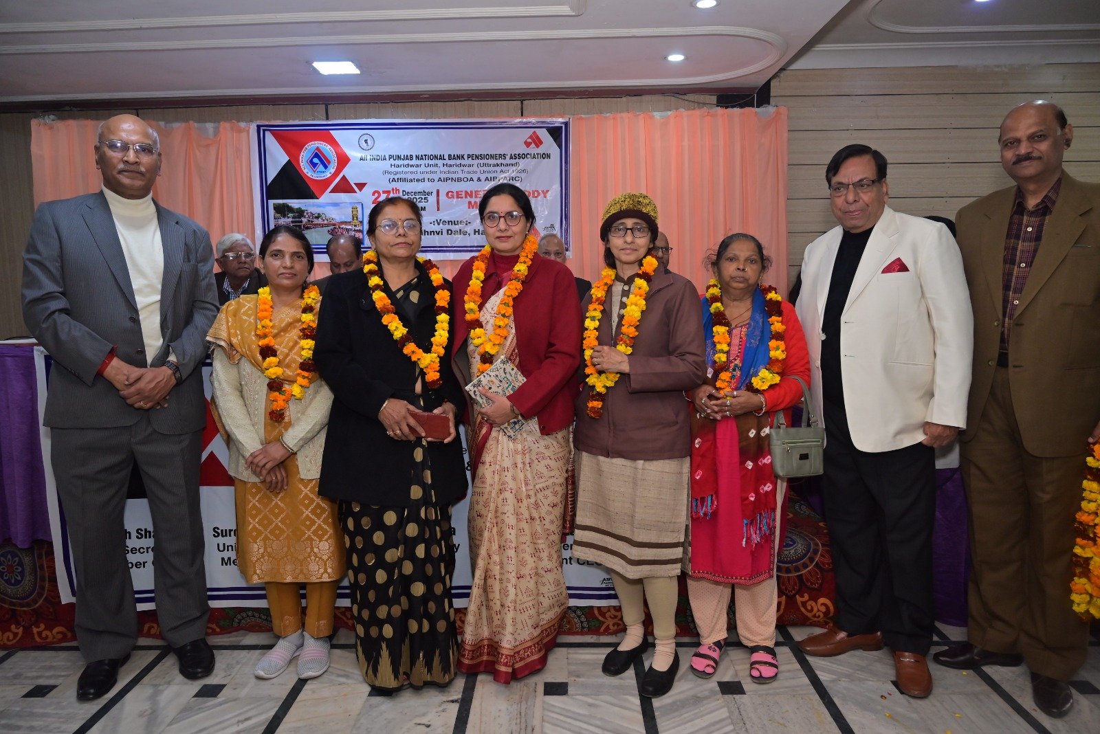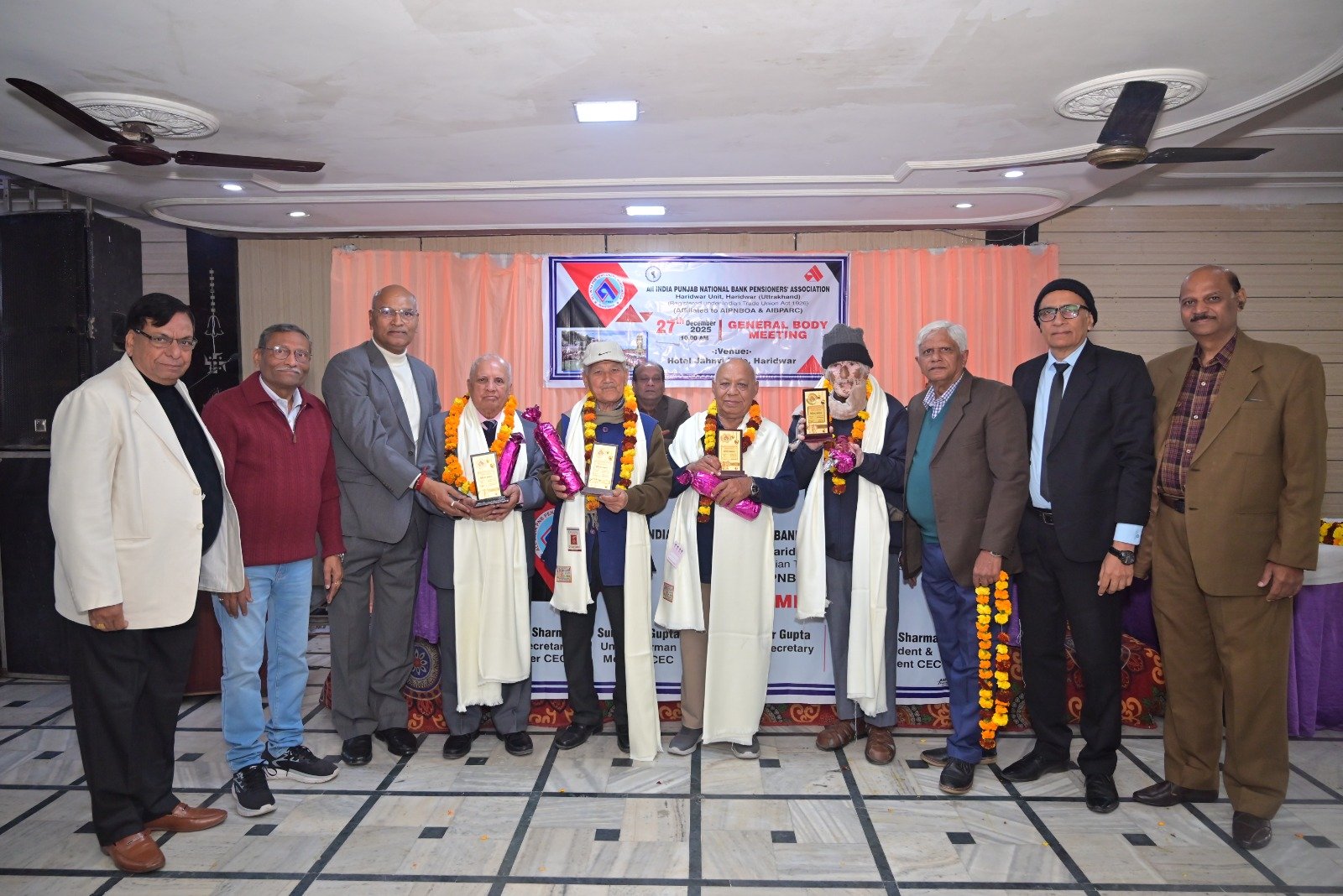 हरिद्वार। ऑल इंडिया पंजाब नेशनल बैंक पेंशनर्स एसोसिएशन हरिद्वार मंडल की जनरल बॉडी मीटिंग बड़े धूमधाम से जाह्नवी होटल में शनिवार को आयोजित की गई। कार्यक्रम को औपचारिक रूप से प्रारंभ करते हुए सचिव श्री पीयूष शर्मा जी ने यूनिट उपाध्यक्ष श्री सुरेंद्र कुमार एवं श्री राजकुमार सक्सेना, चेयरमैन सुरेंद्र गुप्ता जी, केंद्रीय संगठन सचिव श्री अरविंद गुप्ता जी एवं केंद्रीय उपाध्यक्ष एवं हरिद्वार यूनिट अध्यक्ष श्री राजकुमार शर्मा जी को मंच पर आमंत्रित किया। कार्यक्रम का शुभारंभ उपस्थित सम्मानित अतिथियों के द्वारा माता सरस्वती की मूर्ति पर माल्यार्पण द्वारा एवं दीप प्रज्वलित करके किया गया।