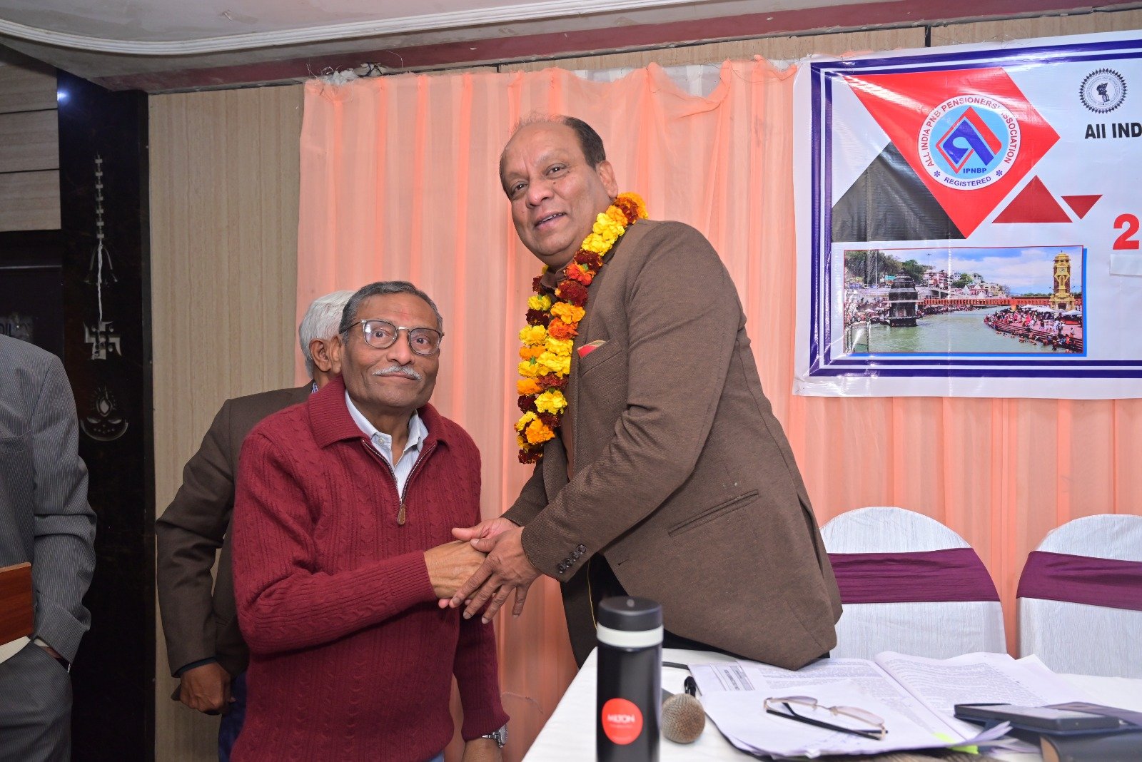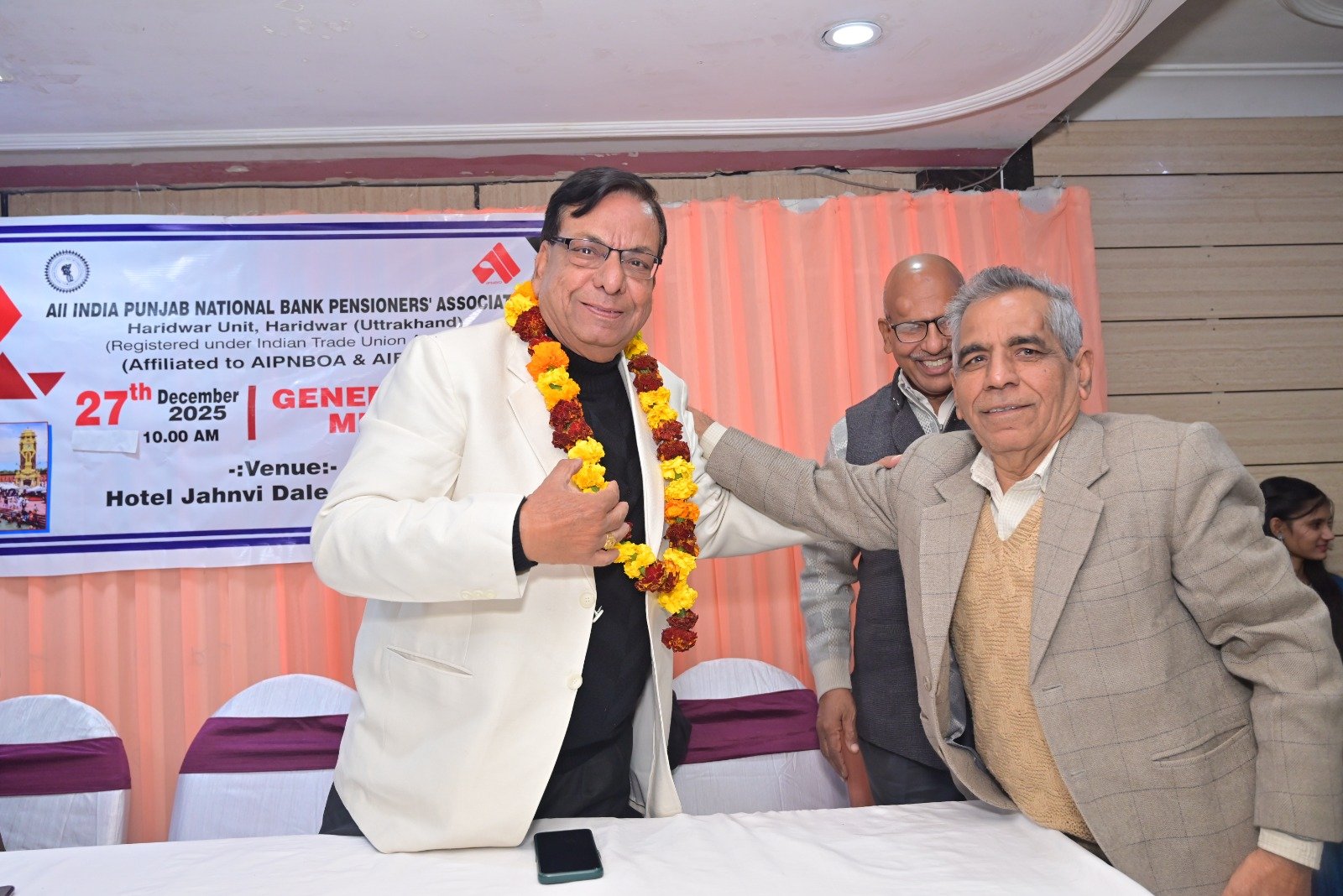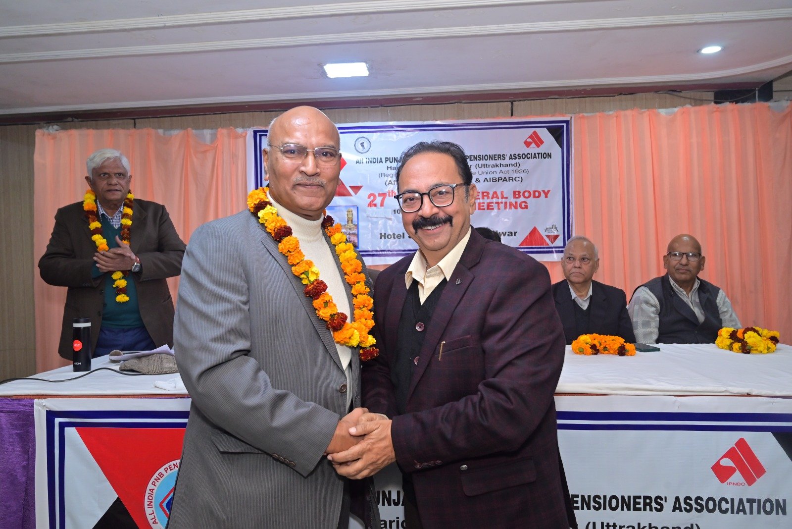 हरिद्वार। ऑल इंडिया पंजाब नेशनल बैंक पेंशनर्स एसोसिएशन हरिद्वार मंडल की जनरल बॉडी मीटिंग बड़े धूमधाम से जाह्नवी होटल में शनिवार को आयोजित की गई। कार्यक्रम को औपचारिक रूप से प्रारंभ करते हुए सचिव श्री पीयूष शर्मा जी ने यूनिट उपाध्यक्ष श्री सुरेंद्र कुमार एवं श्री राजकुमार सक्सेना, चेयरमैन सुरेंद्र गुप्ता जी, केंद्रीय संगठन सचिव श्री अरविंद गुप्ता जी एवं केंद्रीय उपाध्यक्ष एवं हरिद्वार यूनिट अध्यक्ष श्री राजकुमार शर्मा जी को मंच पर आमंत्रित किया। कार्यक्रम का शुभारंभ उपस्थित सम्मानित अतिथियों के द्वारा माता सरस्वती की मूर्ति पर माल्यार्पण द्वारा एवं दीप प्रज्वलित करके किया गया।