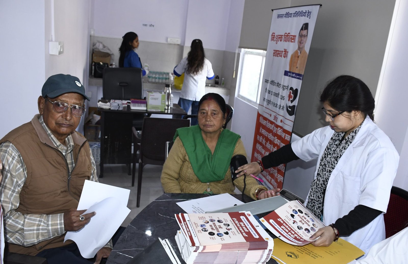 मुख्यमंत्री पुष्कर सिंह धामी के जनकल्याणकारी दृष्टिकोण के अनुरूप आयोजित इस शिविर में एक्स-रे, ईसीजी, बीपी, शुगर, थायराइड एवं विभिन्न रक्त जांच सहित आधुनिक स्वास्थ्य सुविधाएं उपलब्ध कराई गईं। शिविर में हृदय रोग विशेषज्ञ, हड्डी रोग विशेषज्ञ, स्त्री रोग विशेषज्ञ, नेत्र रोग विशेषज्ञ, दंत चिकित्सक एवं फिजिशियन द्वारा लाभार्थियों का व्यापक स्वास्थ्य परीक्षण किया गया। जांच के उपरांत आवश्यक औषधियों का निःशुल्क वितरण भी किया गया।