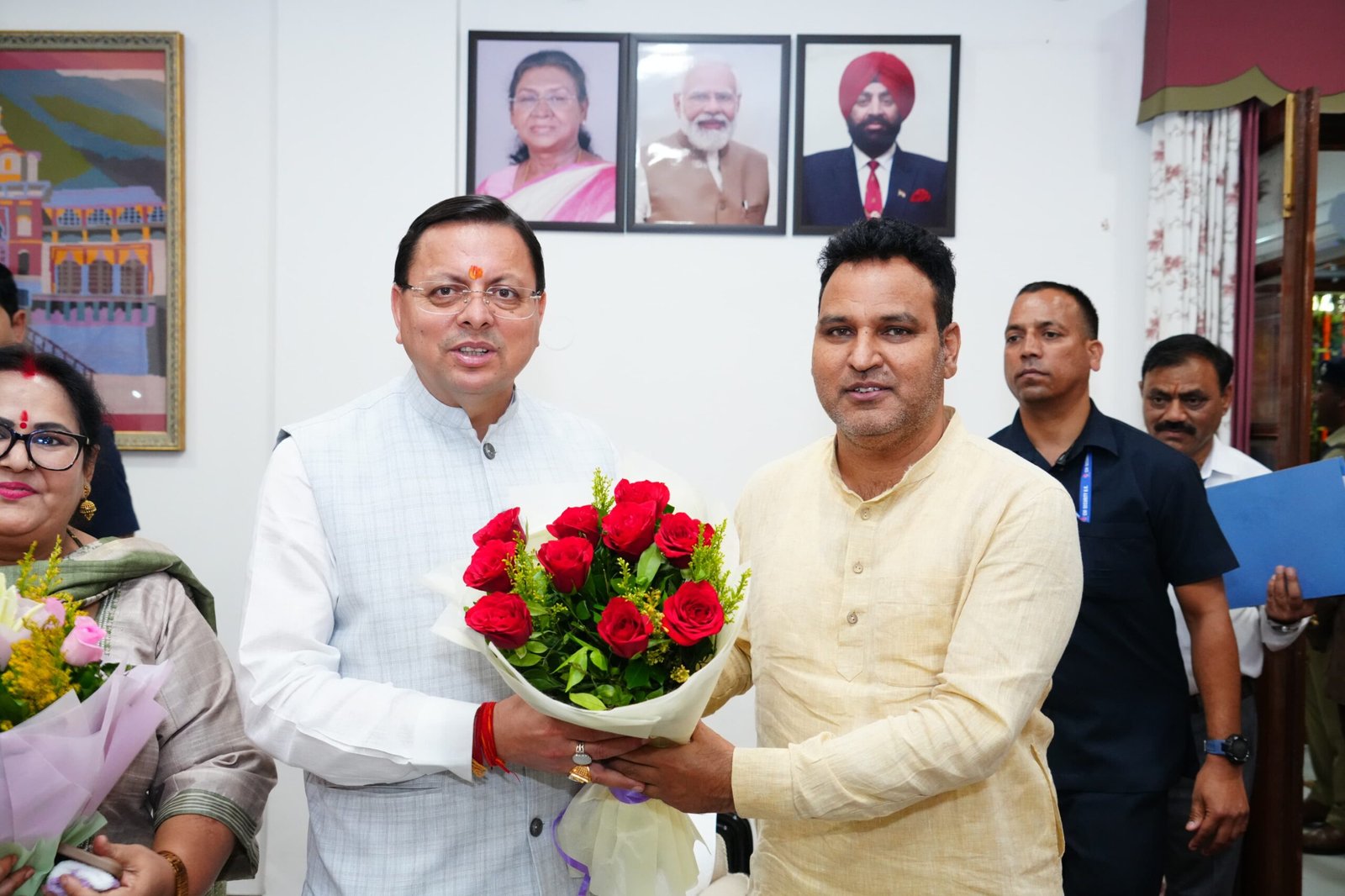 मुख्यमंत्री श्री पुष्कर सिंह धामी से सोमवार को मुख्यमंत्री आवास में विधानसभा अध्यक्ष श्रीमती रितु खंडूरी, राज्यसभा सांसद श्री महेंद्र भट्ट, कैबिनेट मंत्री डॉ. धन सिंह रावत, श्री सौरभ बहुगुणा , विधायक श्री मुन्ना सिंह चौहान, श्री किशोर उपाध्याय, श्री विनोद कंडारी, श्री आदेश चौहान, श्रीमती आशा नौटियाल ने मुलाकात कर दीपावली की शुभकामनाएं दी।