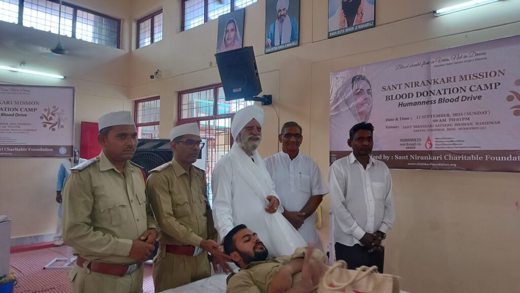 हरिद्वार। सतगुरु माता सुदीक्षा जी महाराज की प्रेरणा से संत निरंकारी मिशन की सामाजिक शाखा संत निरंकारी चेरेटेबल फाउंडेशन द्वारा हरिद्वार भवन में रक्तदान शिविर का आयोजन किया गया। शिविर का शुभारंभ नगर विधायक मदन कौशिक, मेयर किरण जैसल,राज्य मंत्री सुनील सैनी एवं ज़ोनल इंचार्ज हरभजन सिंह ने रिबन काटकर किया।