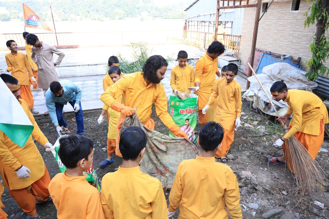 आज परमार्थ निकेतन में आयोजित महाश्रमदान अभियान के अन्तर्गत प्रातः 8 बजे गंगा तट पर सभी ऋषिकुमार और आचार्य एकत्र होकर सभी ने एकस्वर में संकल्प लिया ‘‘स्वच्छ भारत, समृद्ध भारत’’।