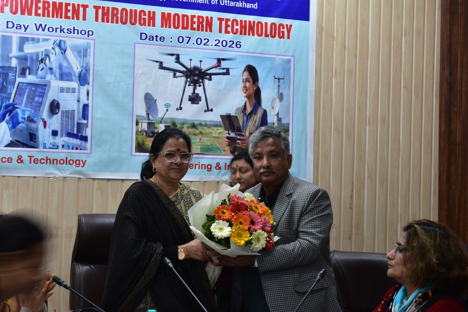 कार्यशाला मे यूसैक के निदेशक एवं महानिदेशक यौकॉस्ट- प्रोo दुर्गेश पंत ने कहा कि वर्तमान समय मे आधुनिक तकनीक के माध्यम से महिलाओं के लिए रोजागर, नवाचार, कौशल विकास एवं नेत्रत्व के नए अवसर सृजित किए जा रहे हैं । आधुनिक युग में तकनीक ने समाज के हर क्षेत्र को प्रभावित किया है, विशेष रूप से महिला सशक्तिकरण के क्षेत्र मे तकनीक सेक मजबूत माध्यम बन कर उभरी है ।सूचना संचार प्रोधोगिकी,इंटरनेट,डिजिटल प्लेटफ़ॉर्म,और सोशल मीडिया ने महिलाओं को नई पहचान, अवसर और आत्मनिर्भरता प्रदान कि है । AI आधारित प्लेटफ़ॉर्म महिलाओं को रोजगार और कौशल विकास के नए अवसर प्रदान कर रहे हैं ।मोबाइल हेल्थ ऐपस, टेलीमेडिसिनऔर अनलाइन परामर्श से महिलाओं को स्वास्थ्य सेवाएंआसानी से मिल रही हैं, साथ ही सेफ़्टी ऐपस, GPS और हेल्पलाइन नंबर महिलाओं की सुरक्षा को मजबूत कर रहे हैं ।