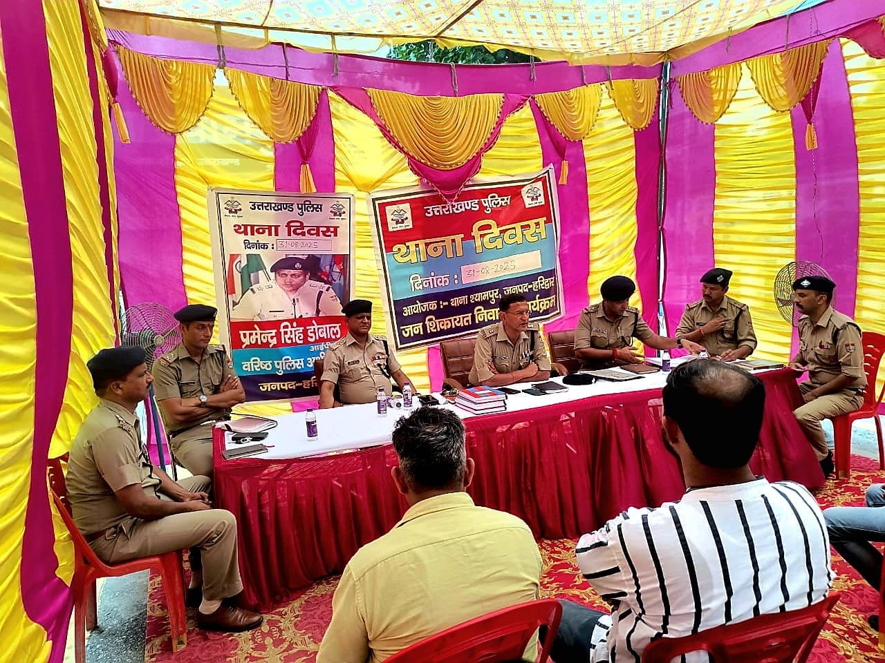 माननीय मुख्यमंत्री महोदय उत्तराखण्ड के आदेश के अनुपालन में वरिष्ठ पुलिस अधीक्षक महोदय के निर्देशानुसार थाना/चौकियो में आने वाले आम जनमानस की शिकायतो को गम्भीरता से लेते हुये आम जनमानस की समस्याओ की सुनवाई एवं निराकरण हेतु प्रत्येक माह में 01 बार “थाना दिवस” आयोजित करने के आदेश के अनुपालन में पुलिस अधीक्षक नगर महोदय व क्षेत्राधिकारी नगर महोदय के पर्यवेक्षण में आज दिनांक 31.08.2025 को थाना श्यामपुर में *“थाना दिवस”* का आयोजन किया गया।