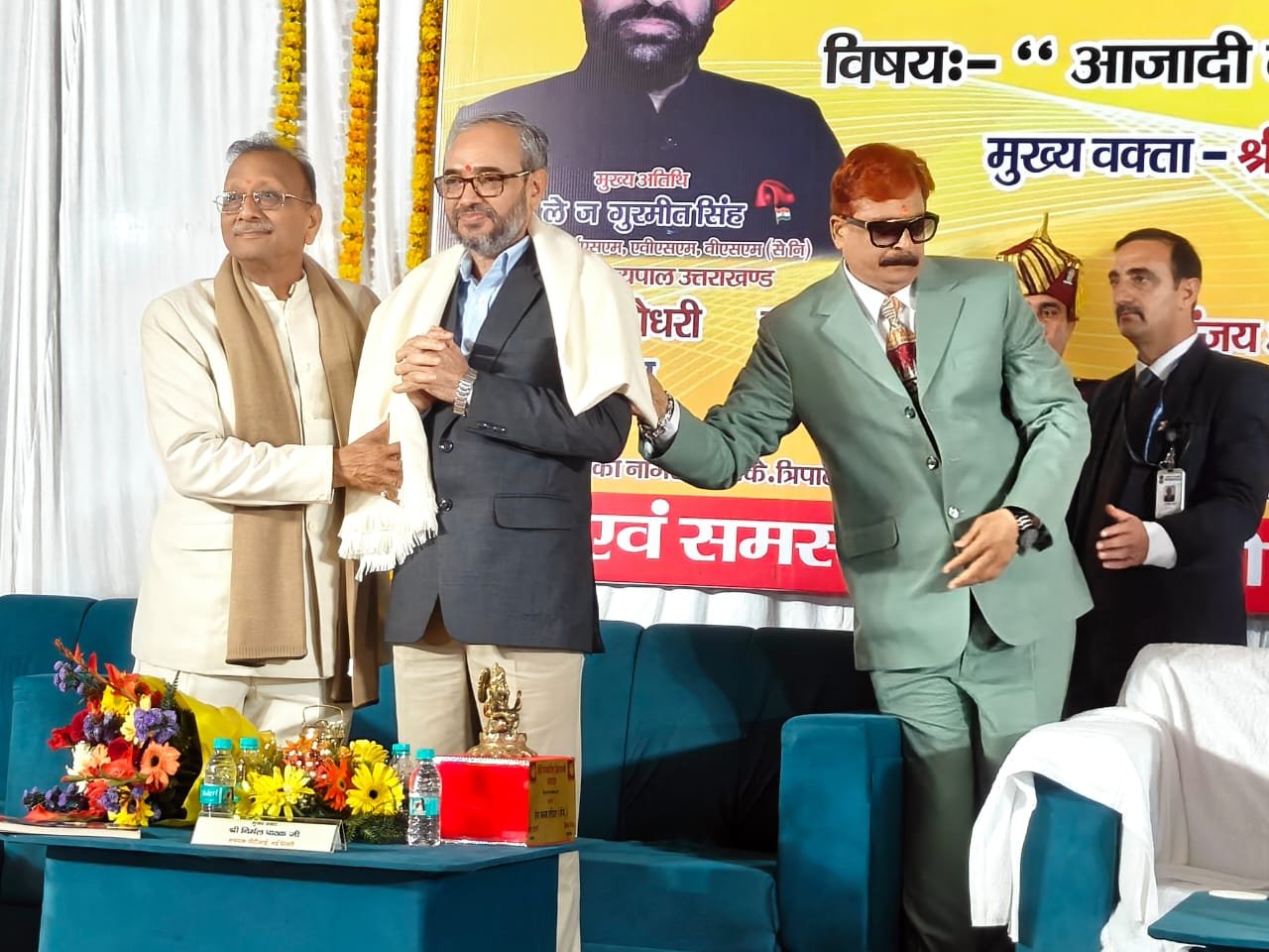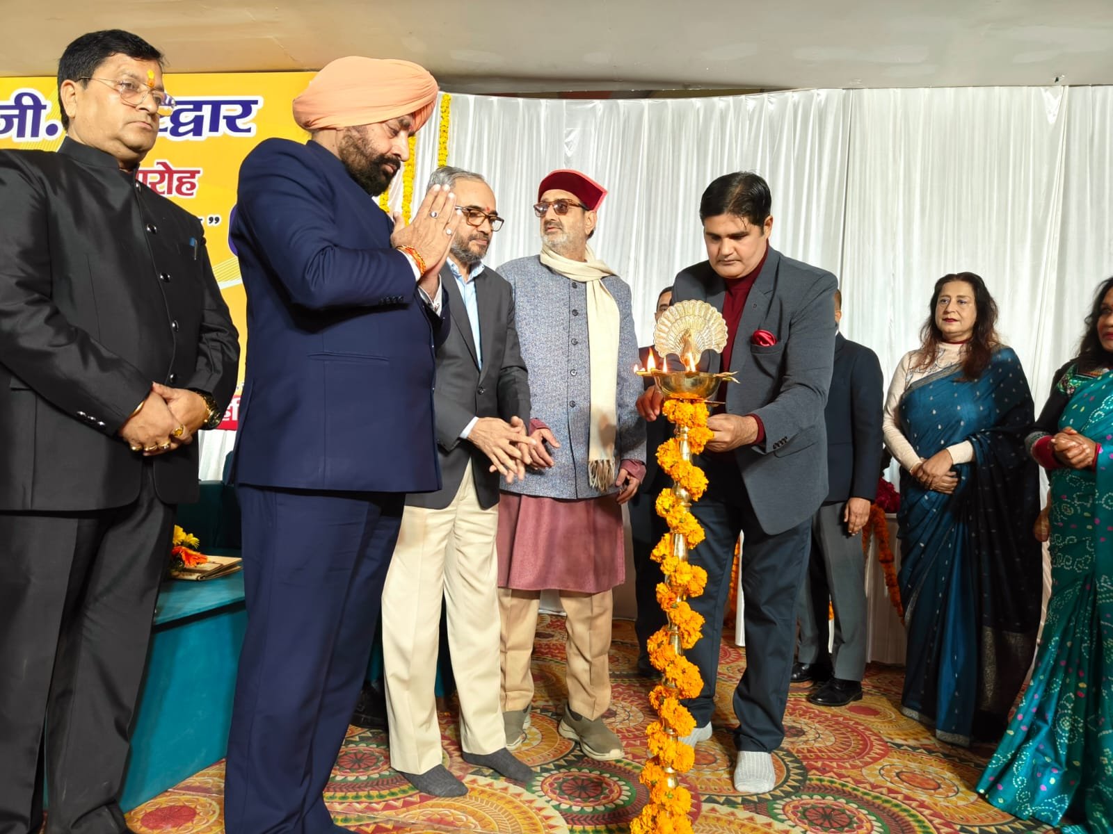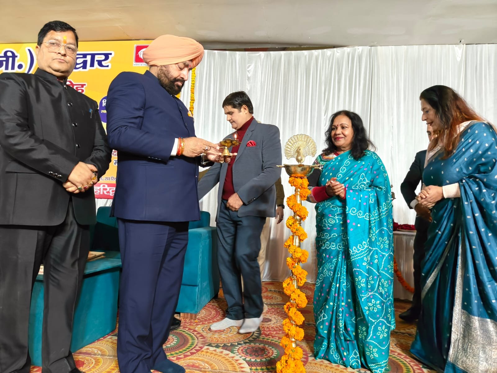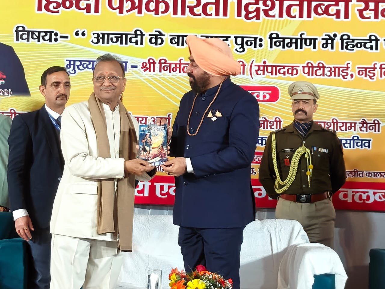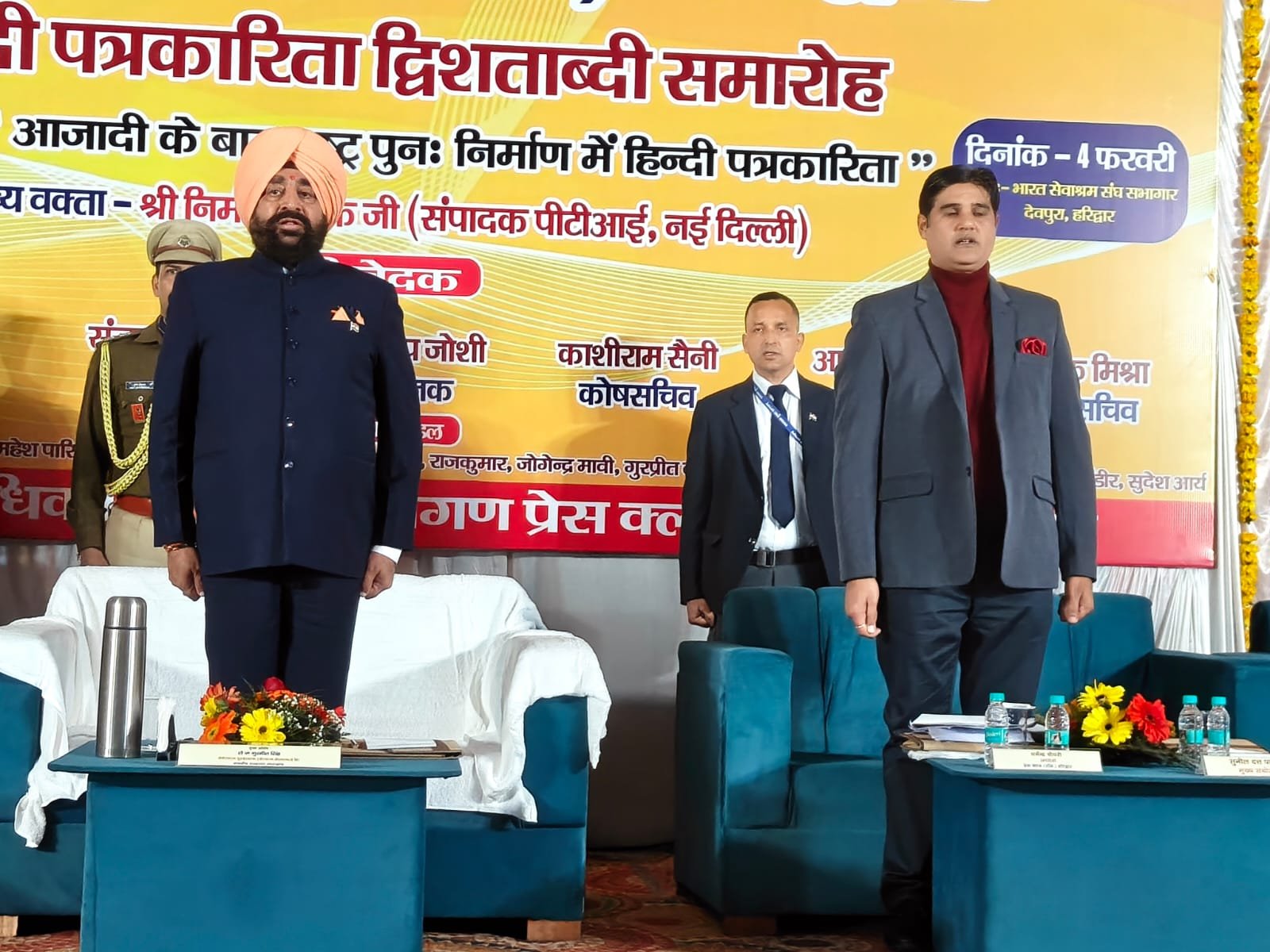 हरिद्वार। प्रेस क्लब द्वारा हिंदी पत्रकारिता द्वि शताब्दी समारोह में आजादी के बाद राष्ट्र पुनः निर्माण में हिंदी पत्रकारिता विषय संगोष्ठी का आयोजन किया गया। देवपुरा चौक स्थित भारत सेवाश्रम के सभागार में आयोजित संगोष्ठी का शुभारंभ मुख्य अतिथि राज्यपाल लेफ्टिनेंट जनरल गुरमीत सिंह (से.नि.) ने दीप प्रज्वलित कर किया। प्रेस क्लब अध्यक्ष धर्मेंद्र चौधरी एवं महामंत्री दीपक मिश्रा ने राज्यपाल लेफ्टिनेंट जनरल गुरमीत सिंह को बुके देकर सम्मानित किया। इस दौरान वरिष्ठ पत्रकार सुनील दत्त पांडे द्वारा राज्यपाल की उपलब्धियों एवं अनुकरणीय योगदान से अवगत कराया। मंच का संचालन वरिष्ठ पत्रकार संजय आर्य ने किया। सरस्वती शिशु मंदिर की छात्राओं ने राष्ट्रगान की प्रस्तुति दी। राज्यपाल लेफ्टिनेंट गुरमीत सिंह ने समारोह को संबोधित करते हुए कहा कि हिंदी पत्रकारिता का सामाजिक चेतना, मूल्यों और सिद्धांतों के साथ राष्ट्रहित में परिवर्तन जीवन और राष्ट्र की प्रगति, आध्यात्मिक, सामाजिक विकास के साथ भारत की आजादी में महत्वपूर्ण योगदान है।