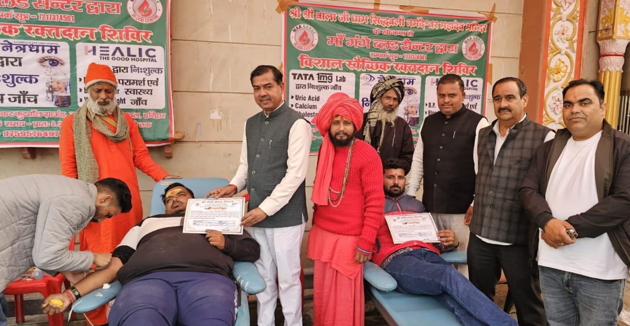 कार्यक्रम के मुख्य अतिथि रानीपुर विधायक आदेश चौहान ने कहा कि रक्तदान महादान है, खास बात यह है कि रक्तदान करने वाले व्यक्ति को भी नहीं पता होता है कि उसका रक्त किसके जीवन की रक्षा में काम आ रहा है। उन्होंने कहा महंत आलोक गिरी का प्रयास सराहनीय है। मां गंगे ब्लड सेंटर बैंक सेंटर के प्रभारी एनएस नेगी ने कहा कि शिविर में विशेषज्ञ चिकित्सकों द्वारा प्रतिभागियों की स्वास्थ्य जांच कर आवश्यक परामर्श एवं दिशा-निर्देश प्रदान किए गए। वहीं करीब 30 युनिट ब्लड एकत्र किया गया। कार्यक्रम संयोजक महंत आलोक गिरी महाराज ने कहा कि आयोजन का मुख्य उद्देश्य समाज के वंचित एवं जरूरतमंद वर्गों तक स्वास्थ्य सेवाएं पहुंचाना, जनस्वास्थ्य के प्रति जागरूकता बढ़ाना तथा रक्तदान जैसे जीवनदायी कार्य को प्रोत्साहित करना रहा। कार्यक्रम के दौरान सेवाभाव, अनुशासन एवं सामाजिक उत्तरदायित्व की भावना स्पष्ट रूप से परिलक्षित हुई। शिविर में पत्रकार शिवांग अग्रवाल, पं शशि भारद्वाज, सहित अन्य लोगों ने रक्तदान किया।