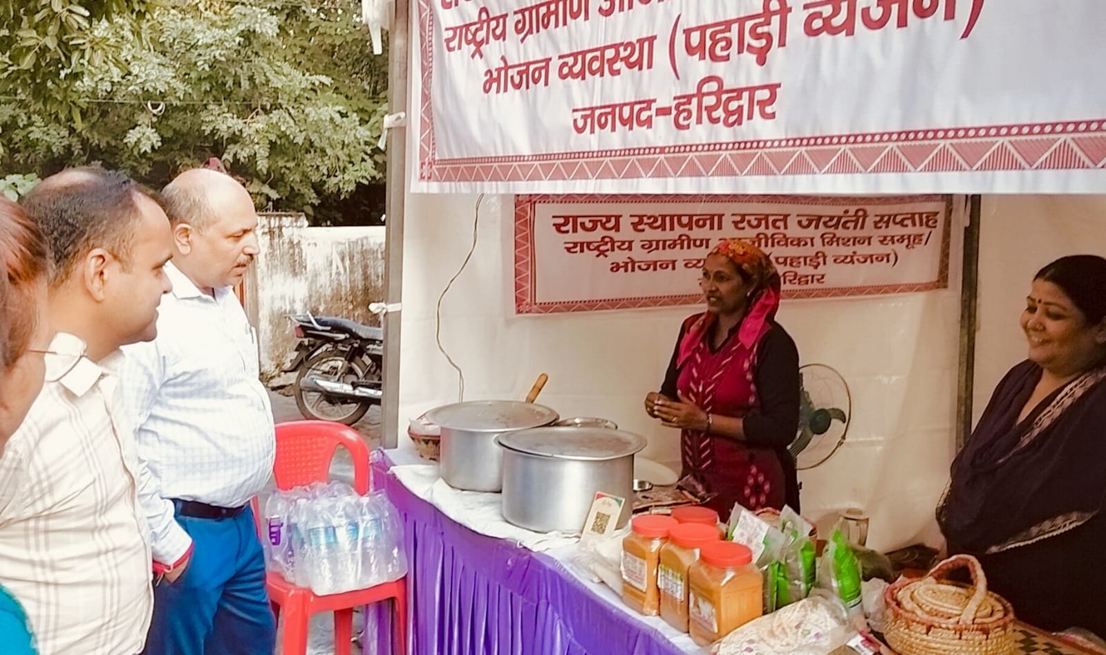 इस अवसर पर जिलाधिकारी ने कहा कि उत्तराखंड राज्य के 25 वर्ष पूर्ण होने के अवसर पर मुख्यमंत्री के निर्देशन में रजत जयंती सप्ताह के तहत कार्यक्रम आयोजित किए जा रहे है तथा जनपद में विभिन्न कार्यक्रम आयोजित किए जा रहे है,जिसमें विभिन्न विभागों द्वारा किए गए विकास कार्यों एवं जन कल्याणकारी योजनाओं की व्यापक प्रचार प्रसार के लिए स्टॉल लगाए गए है,जिसके माध्यम से लोगों को जानकारी उपलब्ध कराई जा रही है,इसके साथ ही राष्ट्रीय आजीविका मिशन के तहत ग्रामीण विकास विभाग के सहयोग से संचालित महिला स्वयं सहायता समूह के द्वारा तैयार किए जा रहे उत्पादों के भी स्टॉल लगाए गए है,इसके साथ ही उत्तराखंड की लोक संस्कृति एवं लोक परंपरा पर आधारित सांस्कृतिक कार्यक्रम भी आयोजित किए जा रहे है।