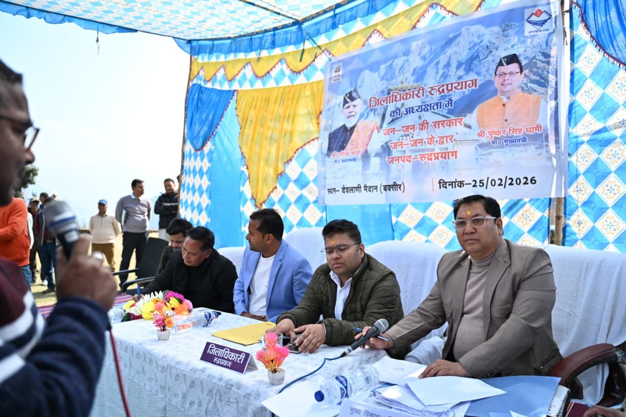 रुद्रप्रयाग। मा० मुख्यमंत्री उत्तराखण्ड के निर्देशानुसार आम जनमानस को केंद्र एवं राज्य सरकार की जनकल्याणकारी योजनाओं का लाभ एक ही स्थान पर उपलब्ध कराने तथा जनसमस्याओं के त्वरित एवं प्रभावी समाधान के उद्देश्य से प्रदेशभर में “जन-जन की सरकार, जन-जन के द्वार” अभियान संचालित किया जा रहा है। इसी क्रम में जिलाधिकारी रुद्रप्रयाग विशाल मिश्रा के कुशल नेतृत्व में जनपद की 27 न्याय पंचायतों में बहुउद्देशीय शिविर आयोजित किए जा रहे हैं।